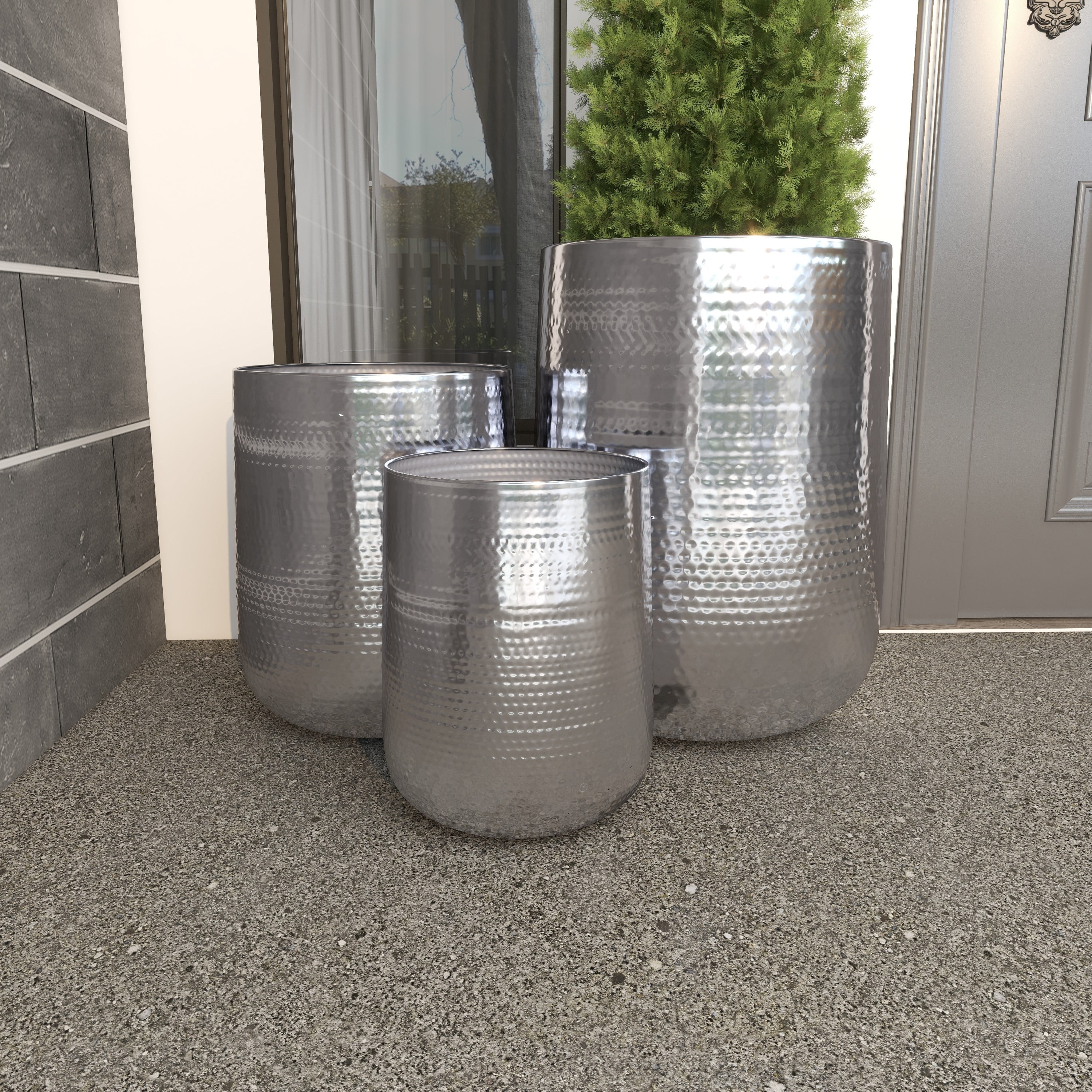 Decmode 21 16 13 H Indoor Outdoor Silver Aluminum Planter With Hammered Design 3 Count Walmart Com